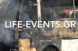 Φωτιά σε τουριστικό λεωφορείο στην περιφερειακή οδό Θεσσαλονίκης [βίντεο] Στις φλόγες τυλίχθηκε του&rho...