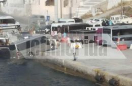 Βανάκι στο λιμάνι της Σαντορίνης αιωρείται πάνω από τη θάλασσα [εικόνες] Σκηνές από ταινία θύμισε η περ&iot...